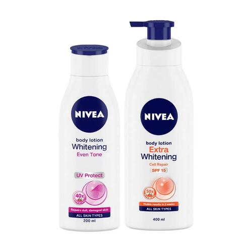 Repair dull and damaged skin with the NIVEA Whitening Even Tone Body Lotion. It helps you get brighter skin with its concentrated natural camu extracts and acerola cherry, which offer up to 40 times higher vitamin C. The result is even-toned skin since the lotion repairs dull skin layer by layer.